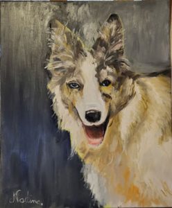 Peintre à l’huile réaliser en décembre 2024 représentant mon border collie. agé de 14ans et toujours en pleine forme